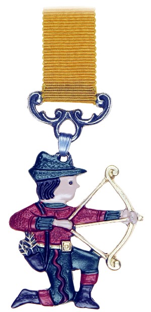 Lesezeichen Schütze, Zinn 93%, Band gelb, L: 33,0 cm