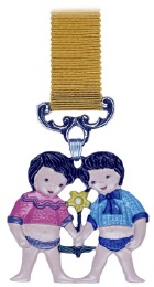 Lesezeichen Zwillinge, Zinn 93%, Band gelb, L: 33,0 cm