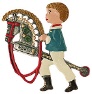 Zinnfigur Behang rund Engel auf Schlitten