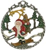 Zinnfigur Behang rund Weihnachtsmann auf Ski doppelseitig, H: 6,0 cm
