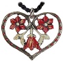 Halsschmuck Herz mit drei Blumen rot, Zinn 93%, H: 3,5 cm