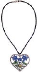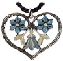 Halsschmuck Herz mit drei Blumen blau, Zinn 93%, H: 3,5 cm