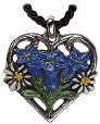 Halsschmuck Herz mit Enzian und Edelweiß, Zinn 93%, H: 3,5 cm