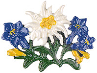 Anstecker Enzian und Edelweiß, Zinn 93%, H: 4,0 cm